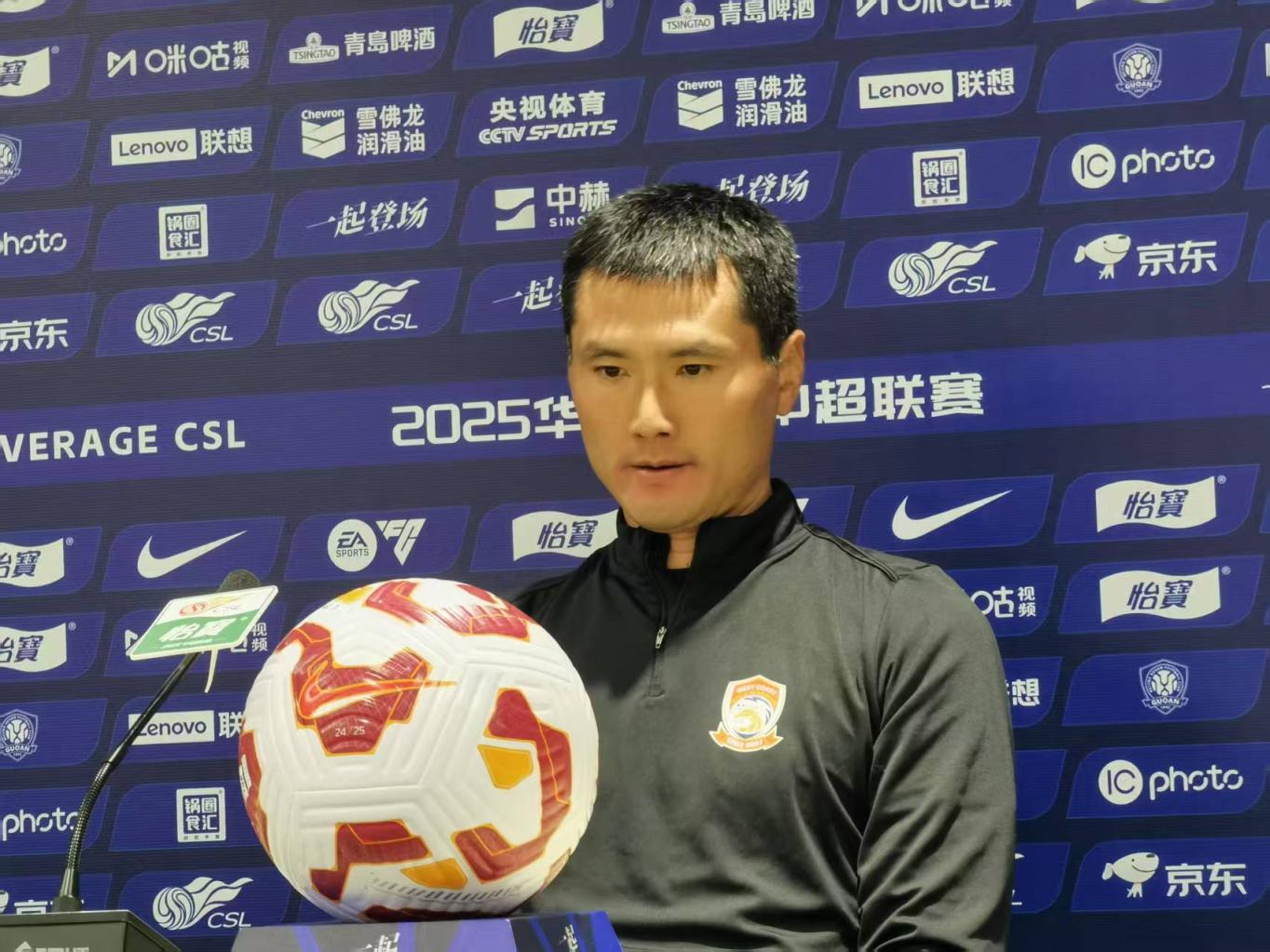 依然在线的颜值,依然标准的身材,还有和曾经作为球员时一样的谦逊低调。走进工体新闻发布厅的邵佳一,喝了一口水,显然是要平复激动的心情。